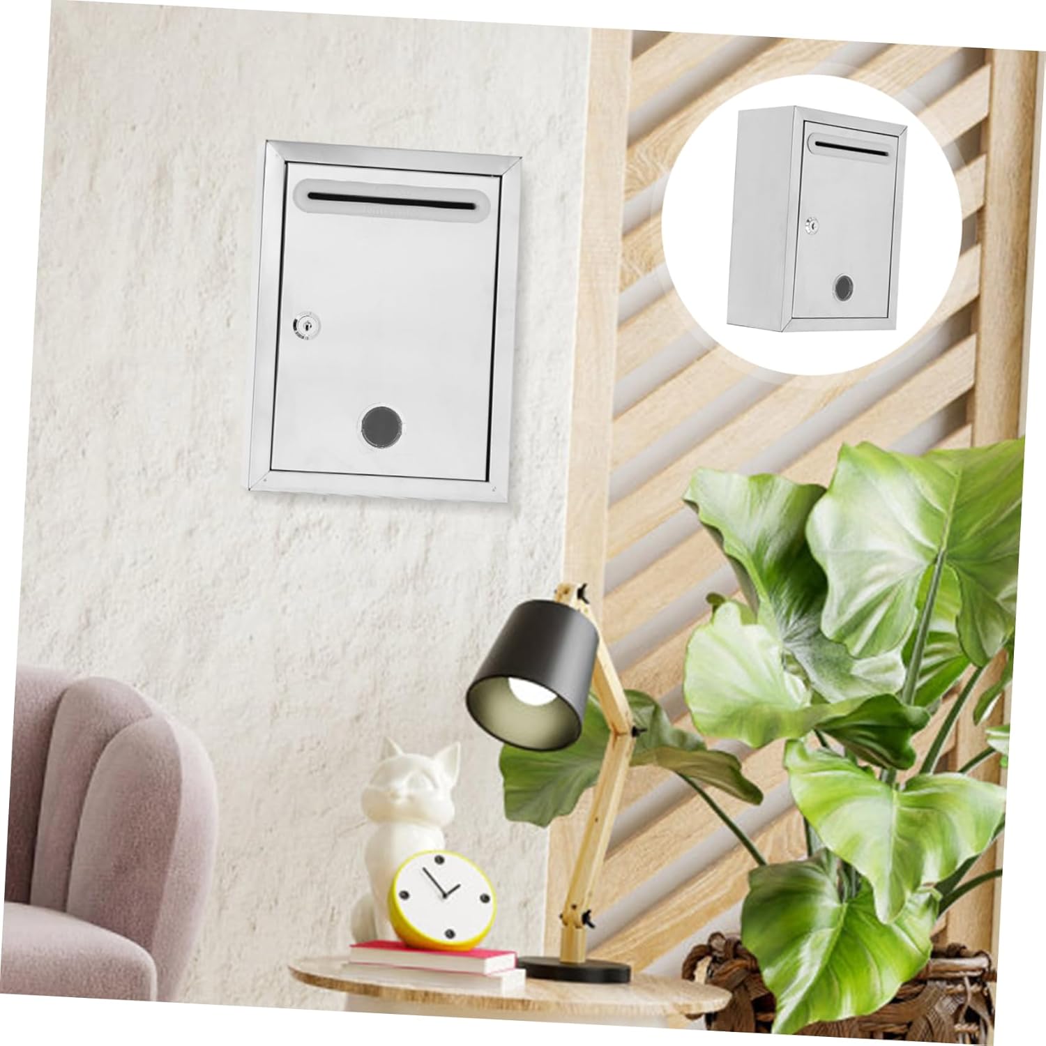 Package List 1 Features -Size:27.00X21.00X11.00cm/10.61X8.25X4.32in locking mailboxes -Color:Silver wall mailboxes for outside -Product Info:Wall-mounted complaint box -Material:Stainless steel wall mailbox with lock - This box help prevent your important mail from being destroyed, stolen or replaced. Wall-mount design, save space locking wall mount mailbox. - This suggestion box is simple but practical in performance, you can use this box on many occasions locking wall mounted mailboxes. - With lock design and the product is well polished, the mail box does not hurt hands when used locking wall-mounted mailbox. - Suitable capacity for storing envelope, newspaper, letter of complaint, as well as the donation lockable mailbox. - Manufactured with , the suggestion box is durable and practical in use. Can be used with confidence mailbox for house wall mount.Goods Descriptionlock mailbox The box is well-designed, durable and practical, is simple to use, easy to install.locking wall-mounted mailbox The suggestion box is made of stainless steel materials, complex process, and with fine workmanship.wall mount locking mailbox It can be used as a mailbox, complain letter box, suggestion box